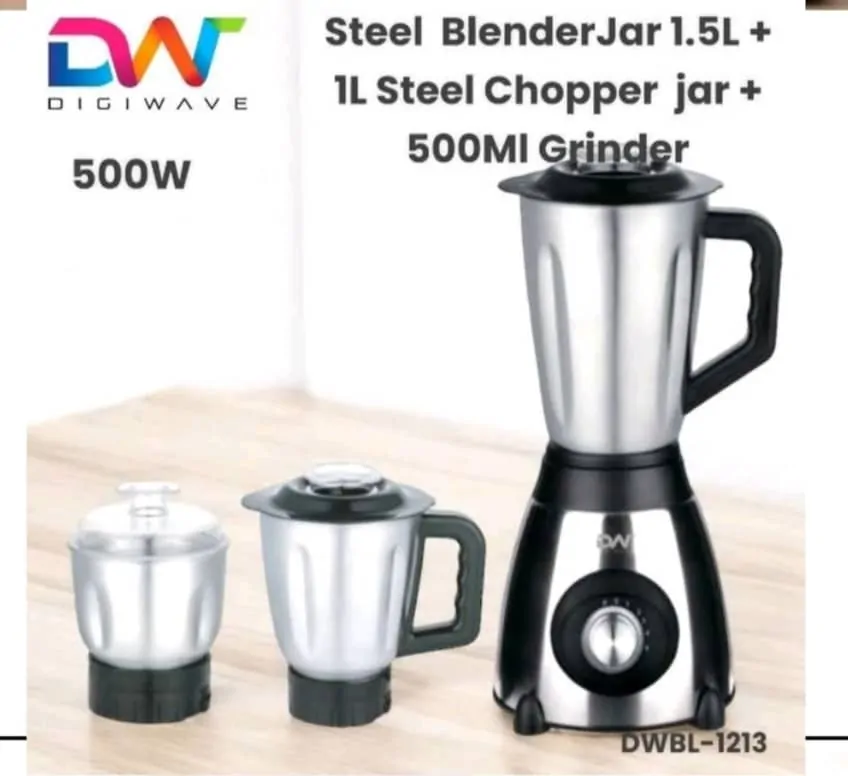Digiwave Blender 1.5L Jar, 1L Jar and Small Dry Mill 500W Stainless Steel DWBL-1213