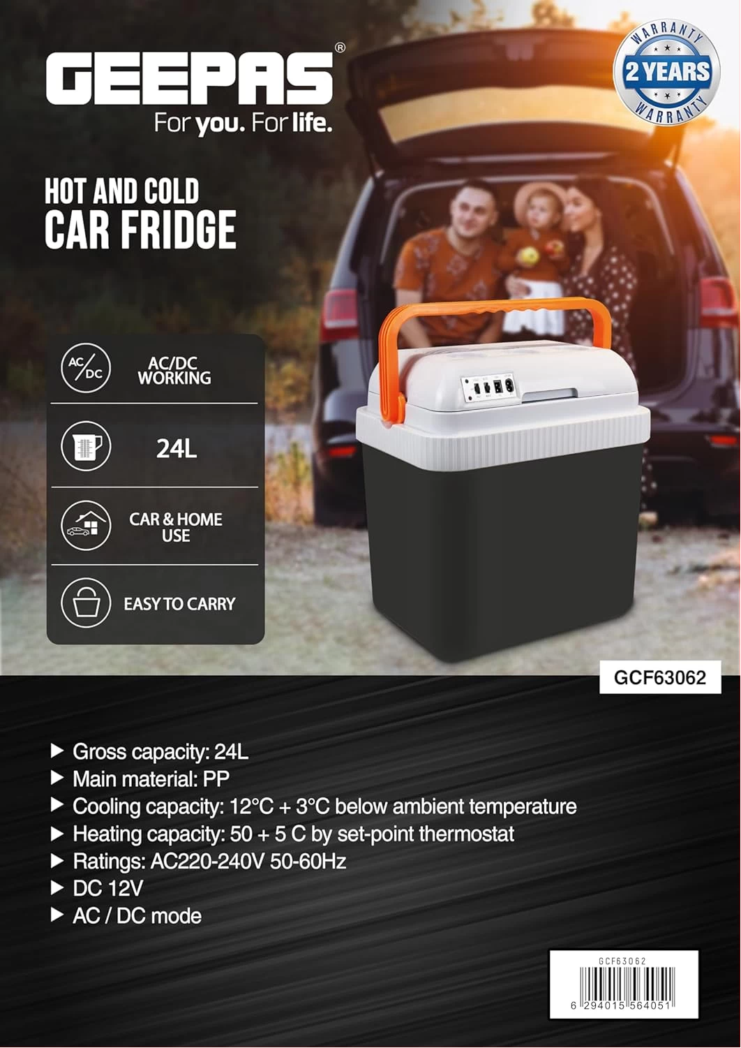 Geepas Hot & Cold Car Fridge | 24L Portable Mini Cooler & Warmer | GCF63062